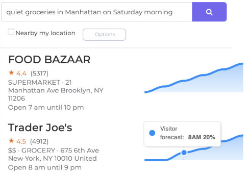 Ideal for consumer-oriented apps that list venues. It is possible to build automatically curated local city guides on top of the software API. Show for example: 1) Currently busy bars nearby a user, 2) The most popular attractions on Friday based on how long visitors stay, 3) Quiet restaurants with high reviews on Wednesday evening, 4) The best day and time to go to the gym to avoid crowds. Read more